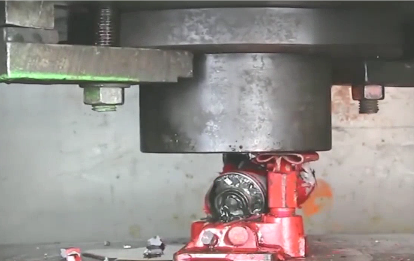 在我們的印象中液壓千斤頂已經(jīng)足夠強(qiáng)大,但在液壓機(jī)面前還是小巫見大巫了,不過出于工作性質(zhì)的不同兩者還是沒有可比性的,這個實(shí)驗(yàn)只不過是為了滿足一些人的好奇心而已。